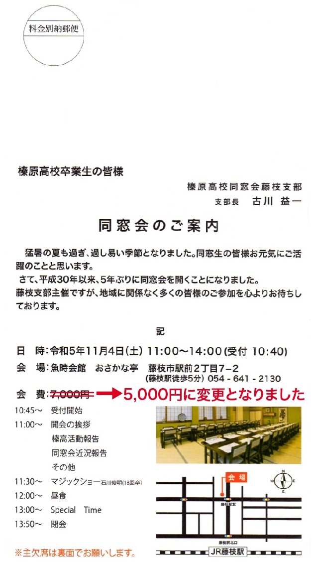 榛原高等学校同窓会 藤枝支部総会のご案内