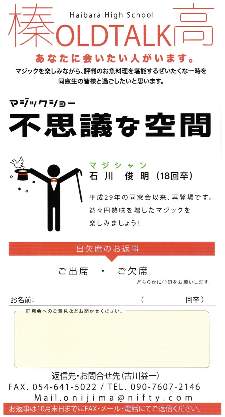 ご案内はがきが届いている方は、10月末までにご返信ください。