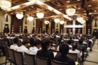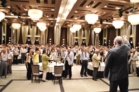 また、引き続き行われた懇親会では、和やかな雰囲気の中、旧交を温め合いました。懐かしい顔ぶれに、当時の思い出がいくつもよみがえってきたのではないでしょうか。終盤には、各回期ごとステージに上がり、校歌や応援歌が披露されました。久しぶりに歌う方も多かったのではと思いますが、懐かしさと母校への気持ちがこもった歌声は、会場を1つにしてくれました。