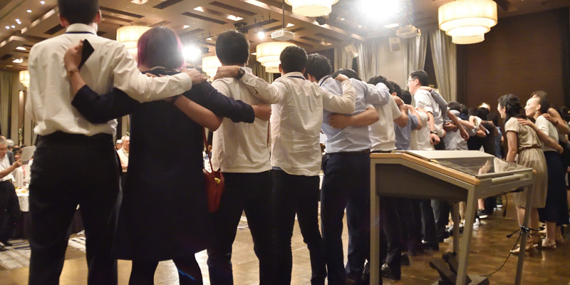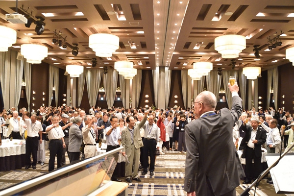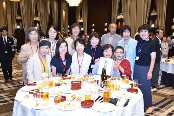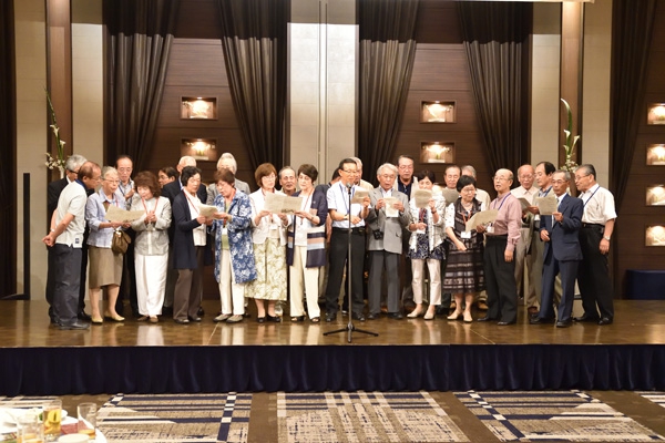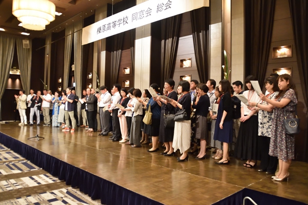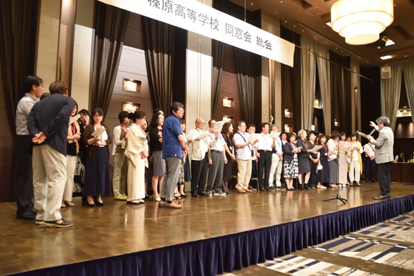 総会に引き続き行われた懇親会では、和やかな雰囲気の中、旧交を温め合いました。懐かしい顔ぶれに、当時の思い出がいくつもよみがえってきたのではないでしょうか。終盤には、各回期ごとステージに上がり、校歌や応援歌が披露されました。久しぶりに歌う方も多かったのではと思いますが、懐かしさと母校への気持ちがこもった歌声は、会場を1つにしてくれました。ご尽力いただいた年次委員の方々、そしてご出席いただいた皆様、本当にありがとうございました。