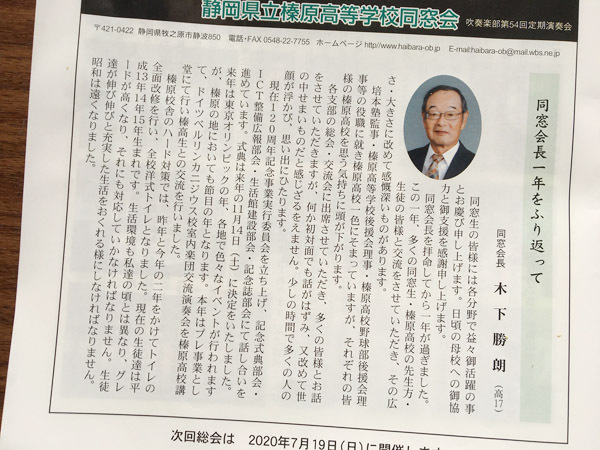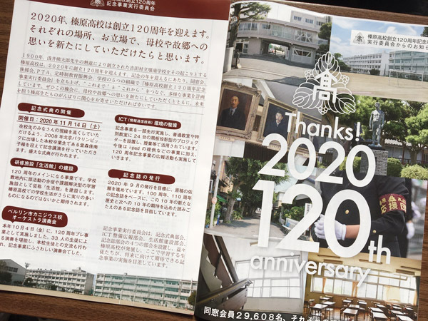いよいよ来年2020年には、榛原高校は創立120周年を迎えます。「榛原高校創立120周年記念事業実行委員会」が立ち上げられ、多様な事業が計画されています。簡単ではございますが誌面にてご紹介させていただいておりますので、それぞれの場所、お立場で、母校や故郷への思いを新たにしていただければ幸いです。