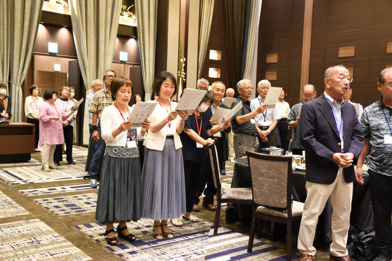 総会に引き続き行われた懇親会では、和やかな雰囲気の中、旧交を温め合いました。懐かしい顔ぶれに、当時の思い出がいくつもよみがえってきたのではないでしょうか。終盤には、全員で校歌を合唱しました。久しぶりに歌う方も多かったのではと思いますが、懐かしさと母校への気持ちがこもった歌声は、会場を1つにしてくれました。ご尽力いただいた年次委員の方々、そしてご出席いただいた皆様、本当にありがとうございました。