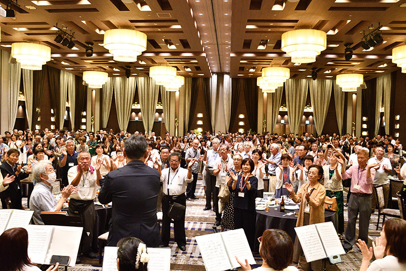 総会に引き続き行われた懇親会では、和やかな雰囲気の中、旧交を温めました。懐かしい顔ぶれに、当時の思い出がいくつもよみがえってきたのではないでしょうか。終盤には、榛原高校吹奏楽部OB・OGの方が所属する「吉田ブラス音楽団」さん(ホームページ、インスタ)に演奏を披露していただきました。幅広い年代に向けて演奏して下さり、音楽に合わせてダンスをする参加者もいらっしゃいました。ラストは生の演奏での校歌合唱。久しぶりに歌う方も多かったのではと思いますが、懐かしさと母校への気持ちがこもった歌声は、会場を1つにしてくれました。